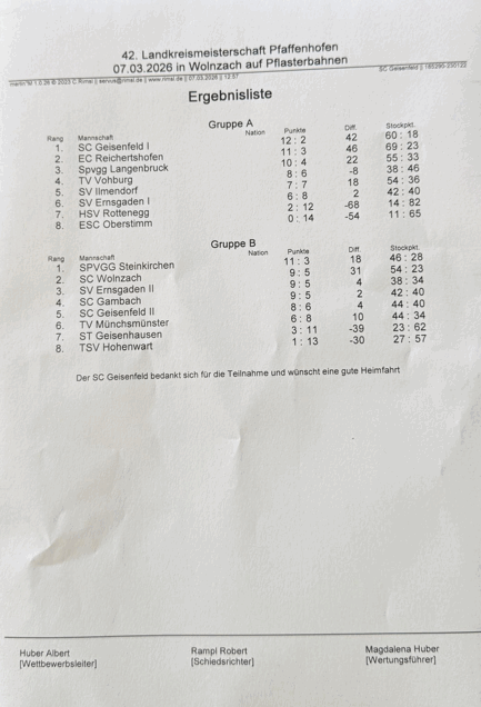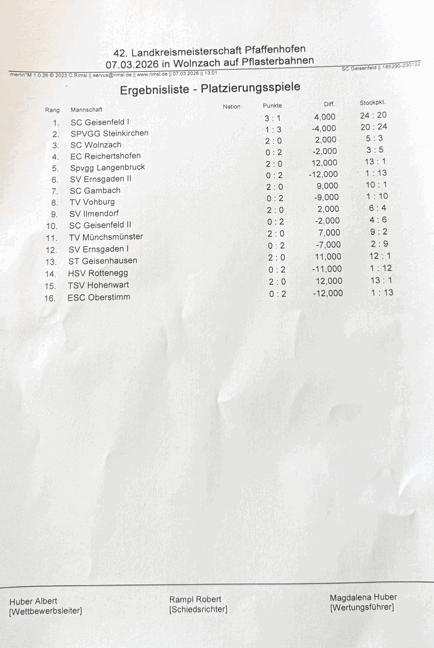 Stockbahnen des SC Wolnzach mit 9.Platz