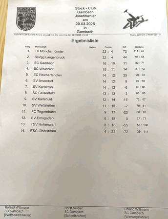 Oberliga Trainingsturnier auf den eigenen Stockbahnen mit 6.Platz