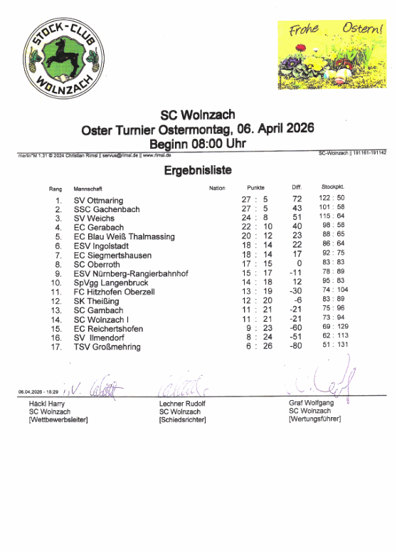 SC Wolnzach beim Ostermontags Turnier in