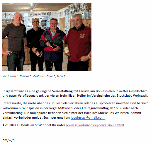 der Wolnzacher Bouler und Boulerinnen veranstaltet.