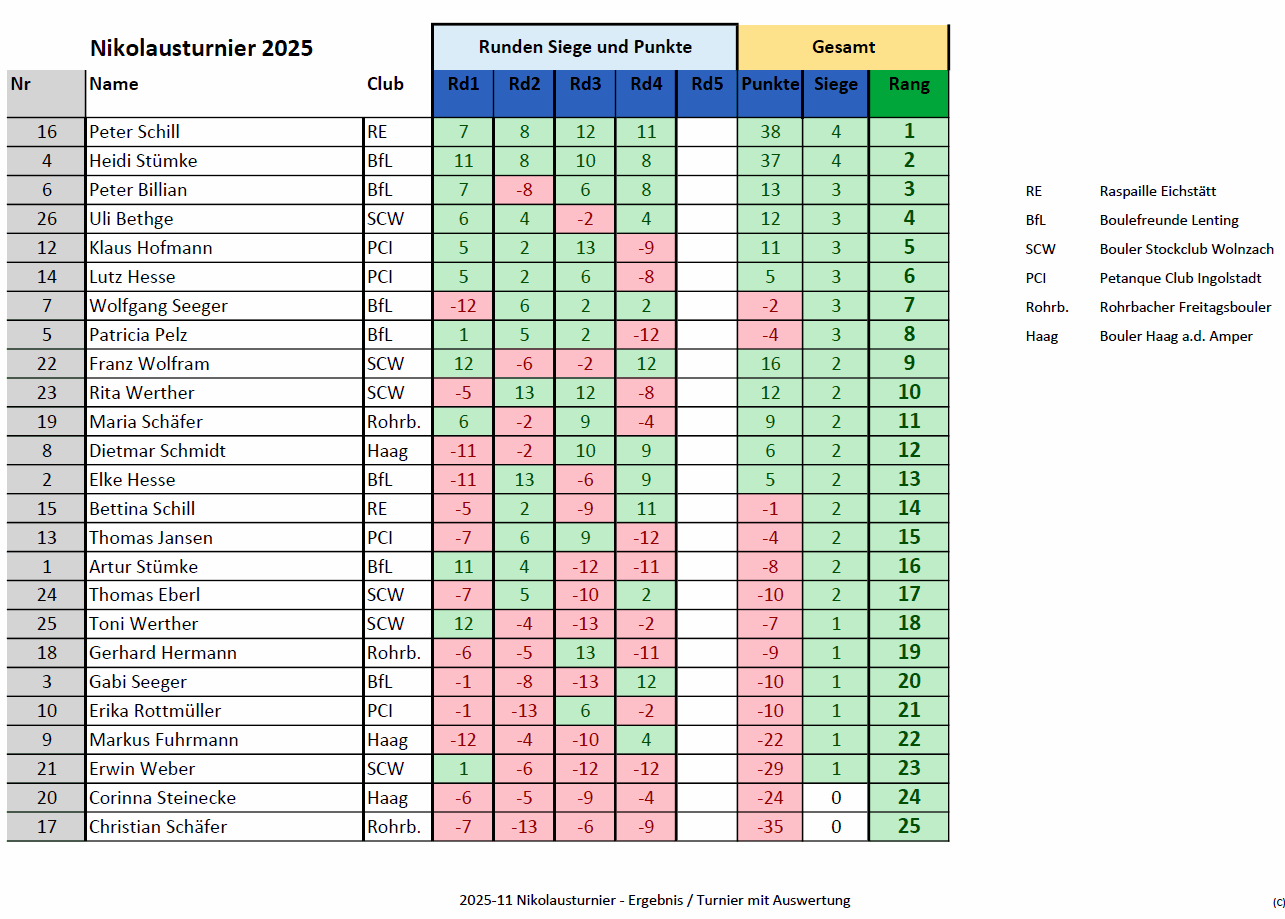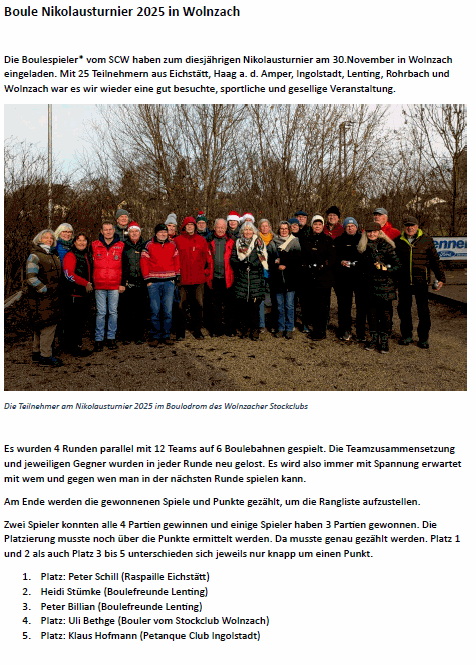 Zweites Nikolausturnier der Bouler und Boulerinnen im