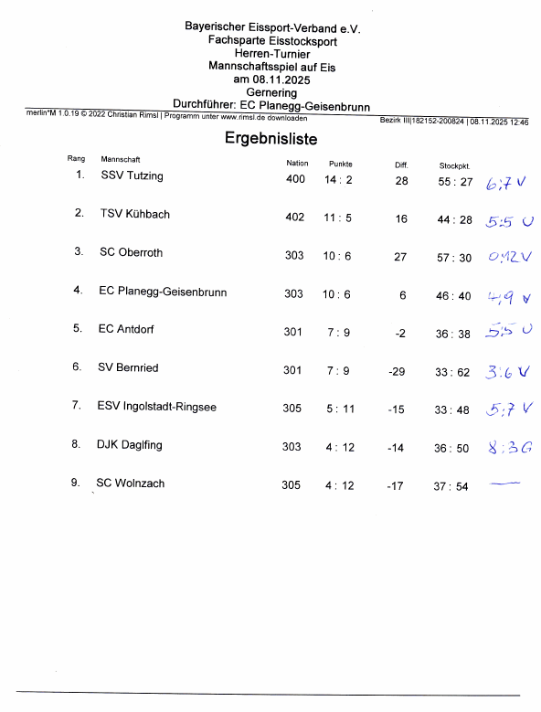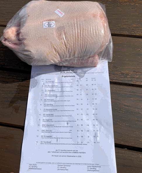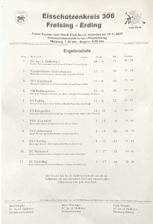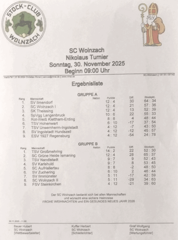 30.11.2025 SC Wolnzach II 15.PlatzZeller Jürgen, Gärtner Siegfried, Gärtner
