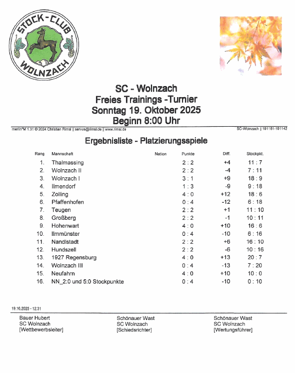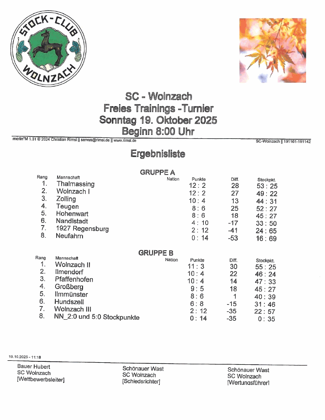 Oberliga Trainingsturnier auf den eigenen Stockbahnen mit 6.Platz