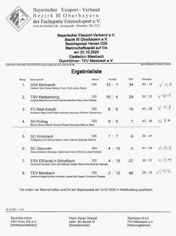 Bezirkspokal Ü50 auf EIS in Miesbach