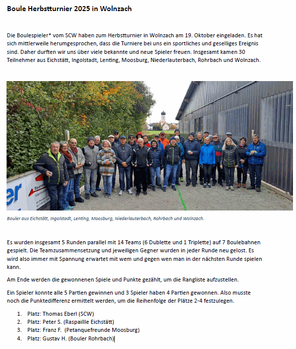 der Wolnzacher Bouler und Boulerinnen veranstaltet.
