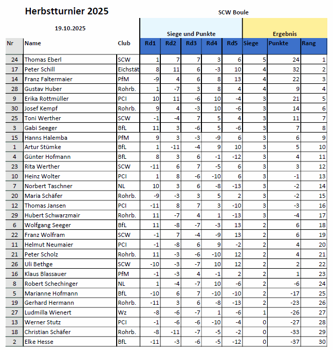 Bericht und Bilder Bouleturnier Sonntag 22.10.2023