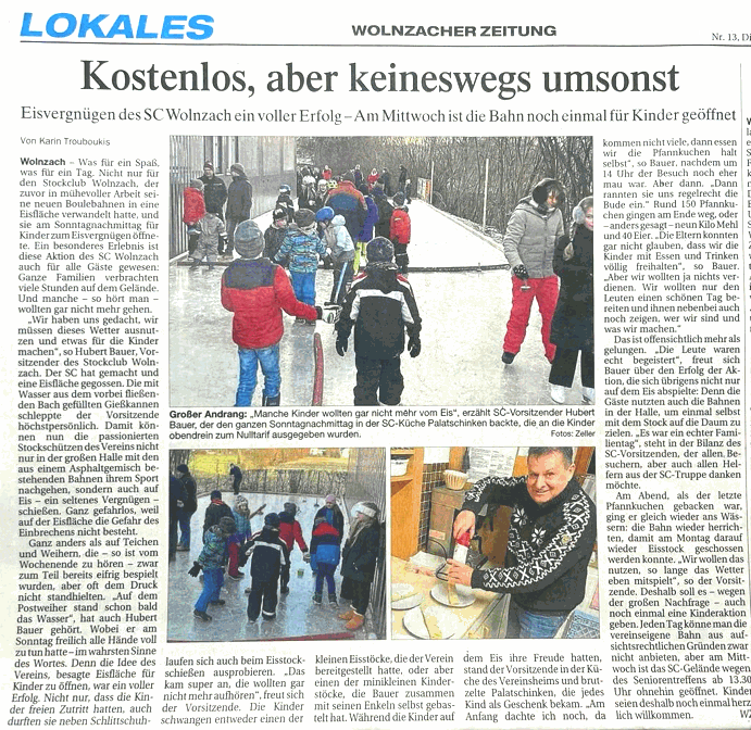 EIS Fläche auf den BOULE Bahnen Zeitungsbericht