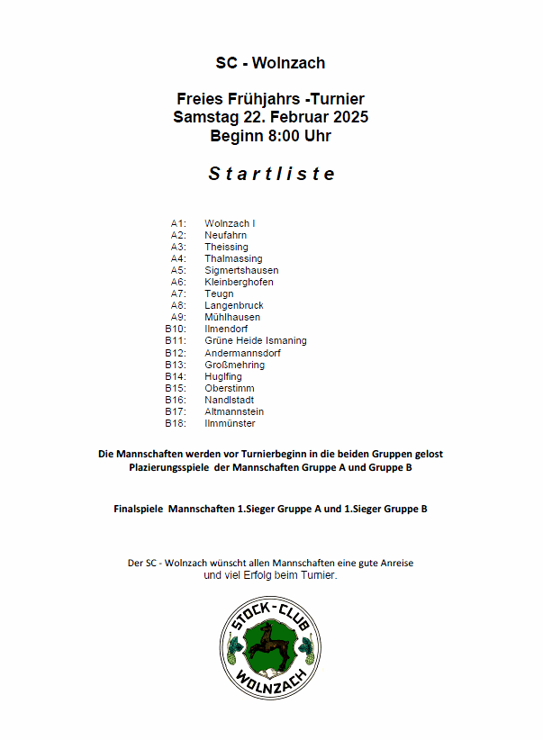 Jeden Dienstag und Freitag ab 19.00 Uhr in der neuen Stockhalle am Vereinsgelände!